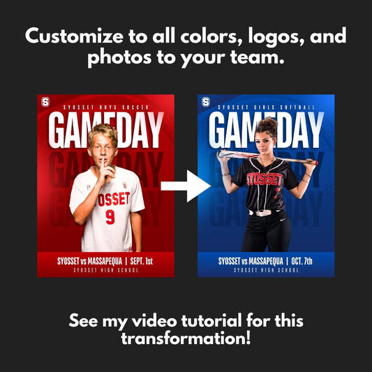 Professional Canva Sports Templates - 12 Customizable Graphics for Social Media - Gameday, Final Score, Committed, Schedule, Senior Night